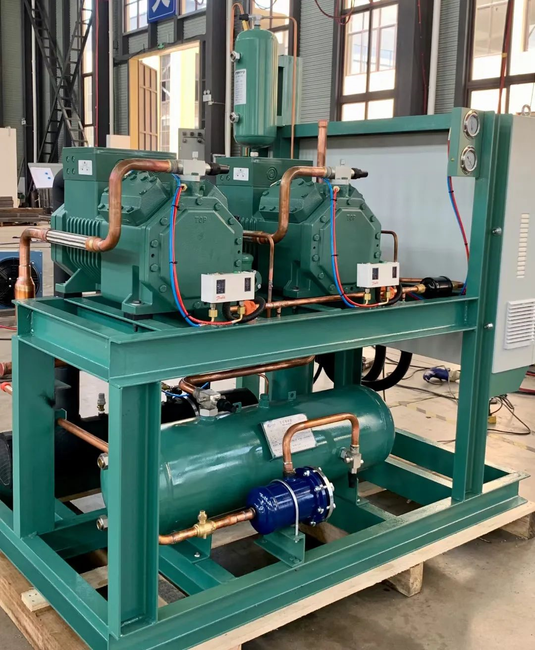 The oil pressure safety protection device will automatically stop when there is no oil to protect the compressor from damage. no sight glass