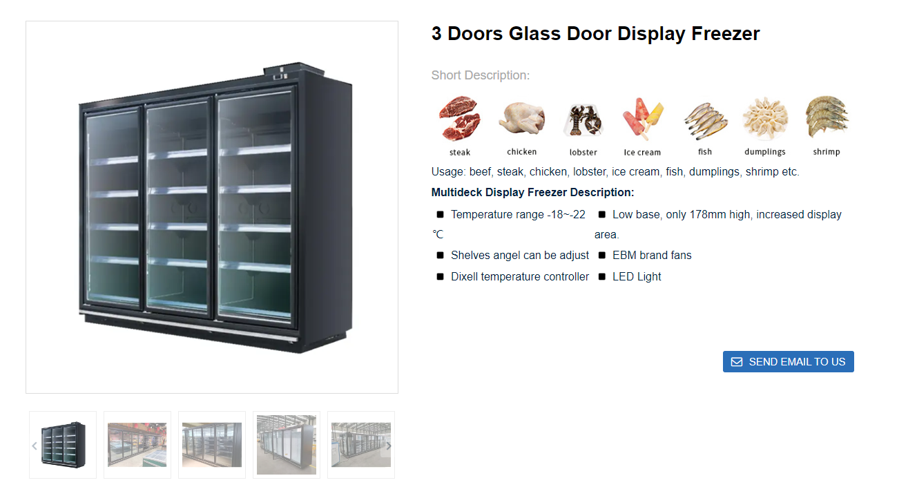 | ◾ Temperature range -18~-22 ℃ | ◾ Low base, only 178mm high, increased display area. |