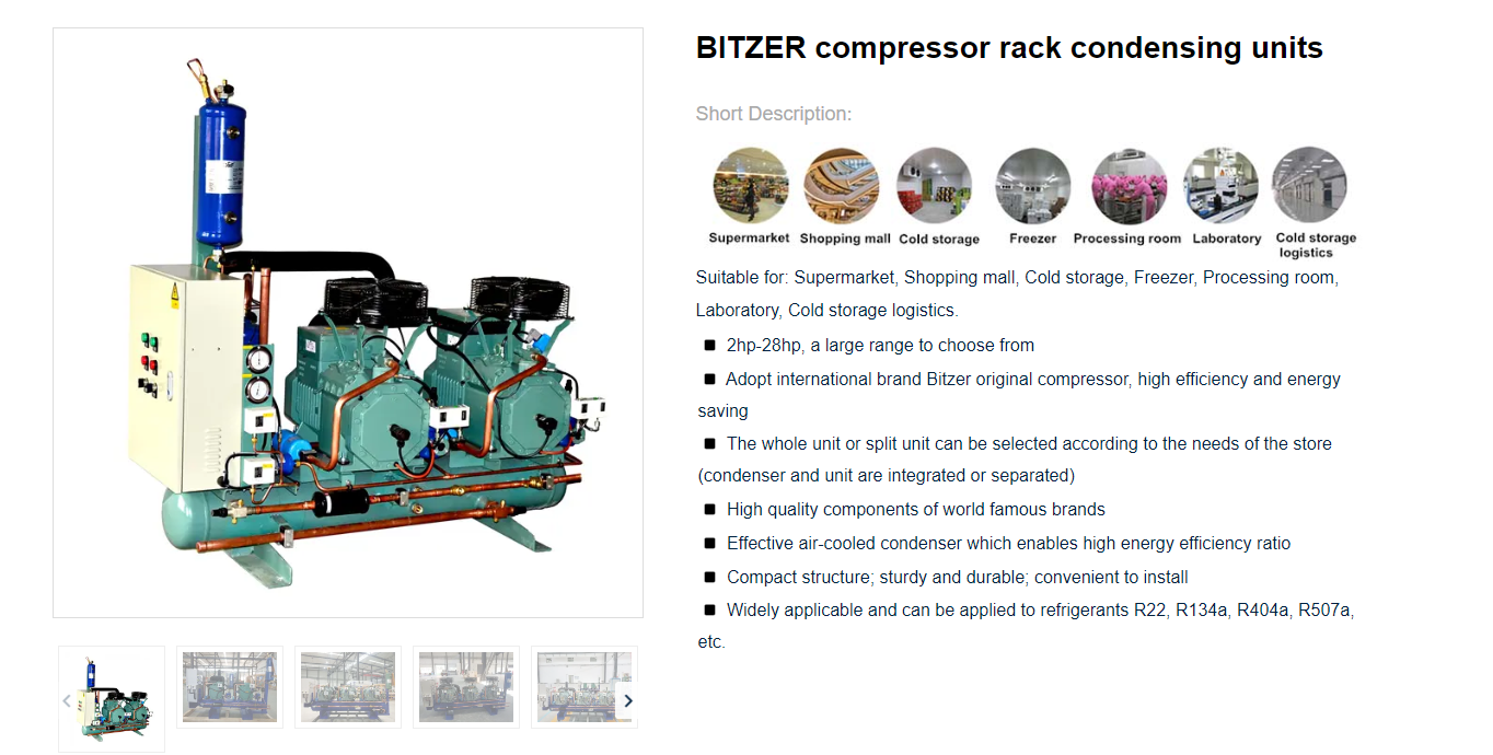 | Features of Bitzer condensing unit refrigeration parts: | ||