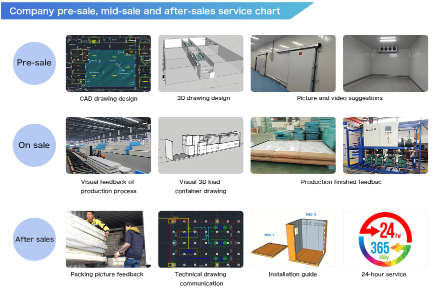 Free quotation for cold storage design and construction is provided before sale, and after-sale: guide installation and commissioning, provide after-sales service 24 hours a day, and follow-up visits regularly.