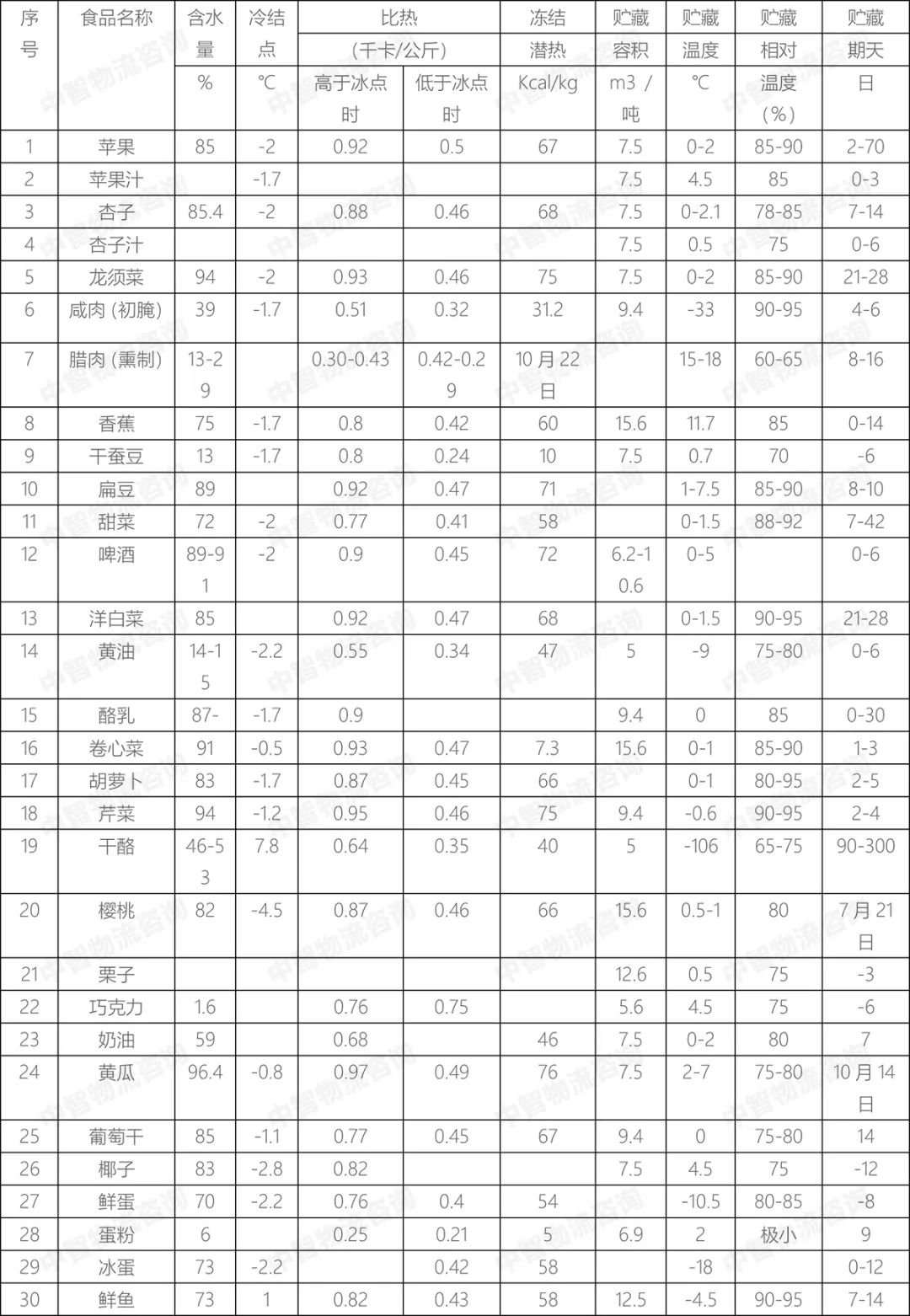 The storage volume ratio and storage conditions of fresh products and common foods are as follows: