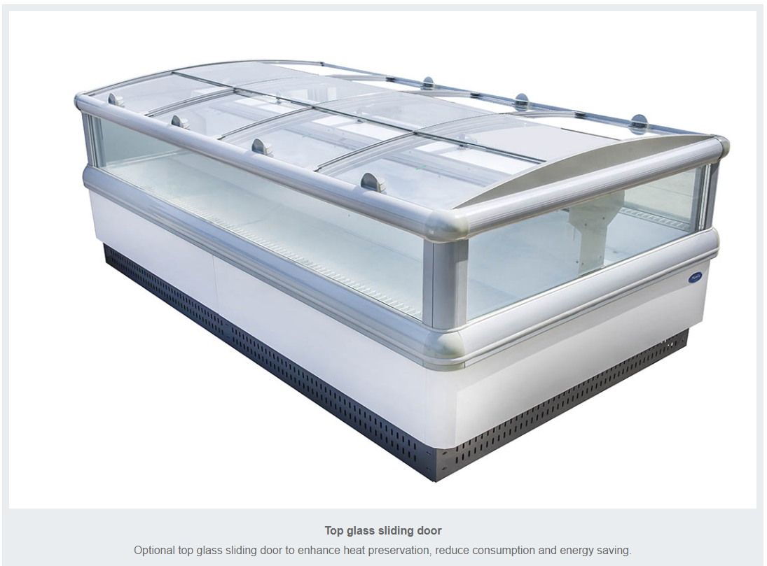Optional top glass sliding door to enhance heat preservation, reduce consumption and energy saving.