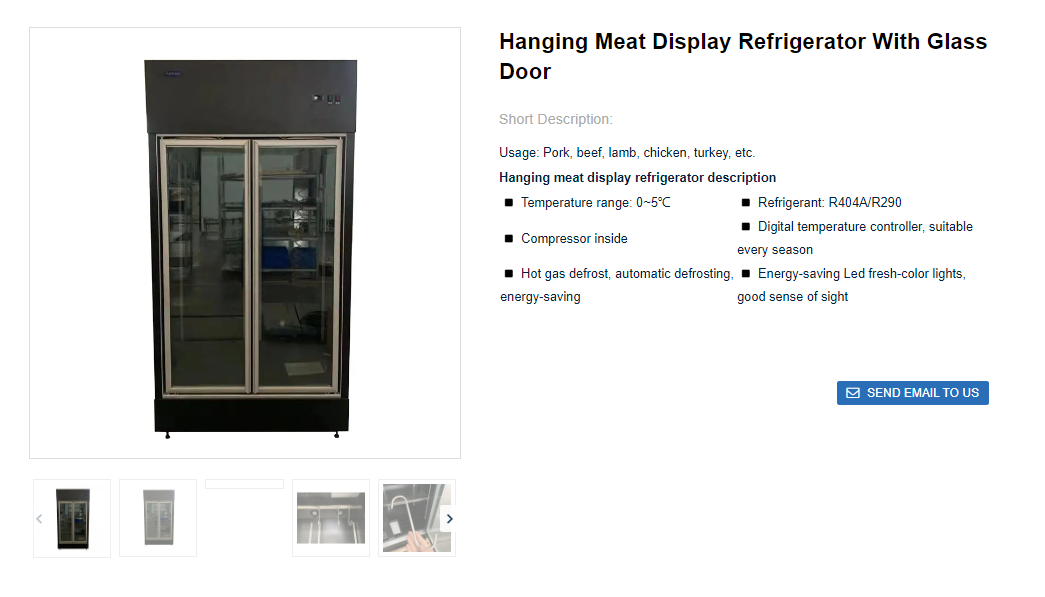 | Hanging meat display refrigerator | LGR-188Y | 1880*750*2290 | 0~5 | 1630 | 1.88 |