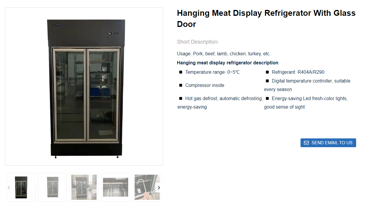 | Hanging meat display refrigerator | LGR-188Y | 1880*750*2290 | 0~5 | 1630 | 1.88 |