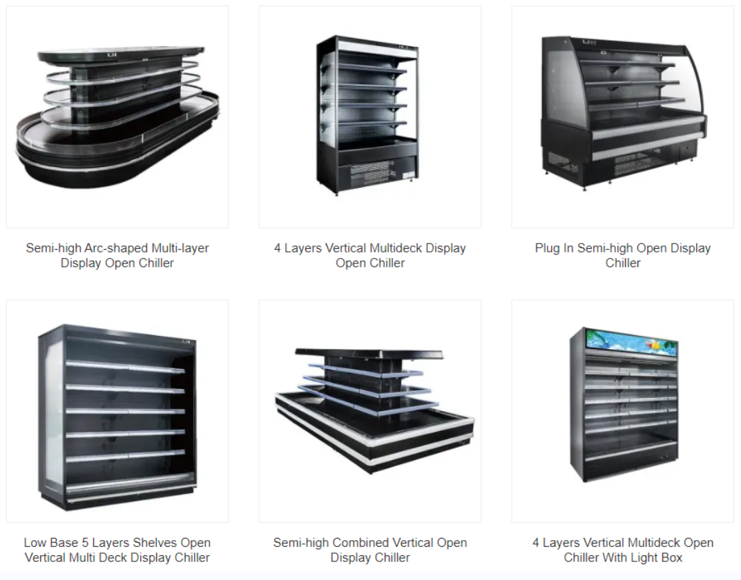 Today we are going to talk about the open display chiller, also called air open chiller,the cooling air will be sent to inside of open chiller by the compressor or condensing units,keep cooling on all the foods and beverages, so as to achieve the effect if keeping fresh and not deteriorating. The open chiller are widely used in supermarket for fruits, vegetables, beverages, milk, sausages, cheese, yogurt etc.