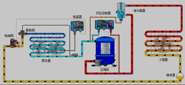 Refrigeration cycle principle: The refrigerant absorbs heat and reaches its boiling point when it is in a low temperature and low pressure liquid state, and then evaporates into a low temperature and low pressure steam. The refrigerant evaporated into a gas becomes a high temperature and high pressure gas under the action of the compressor, and the high temperature and high pressure condenses into a high pressure liquid. After the expansion valve, it becomes a low-pressure low-temperature liquid, and absorbs heat and evaporates again to form the refrigeration cycle of the refrigerator.