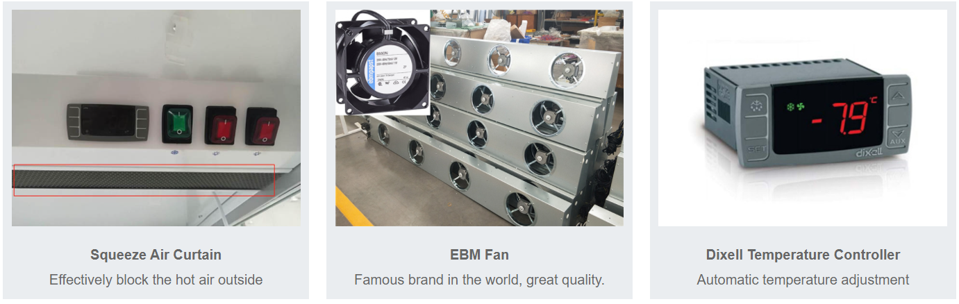 The commercial supermarket display chiller is a vertical open cooling cabinet, which is generally very common in supermarkets. The display open chiller is also called a vertical open chiller. Some holes can be seen on the back panel of the display chiller. The cooling principle of the display open chiller is to use the cold air to blow out from the back of the chiller, so that the cold air can evenly cover all corners of the display cooler to achieve the product freshness effect. The normal setting temperature of the display open chiller is between 2 to 8 degrees. Through the circulation of cold air, the temperature in the chiller is guaranteed. Beverages, yogurt, milk, vacuum-packed meat, cooked food, fruits, etc. are mainly placed in supermarkets, which are not suitable for naked food.
