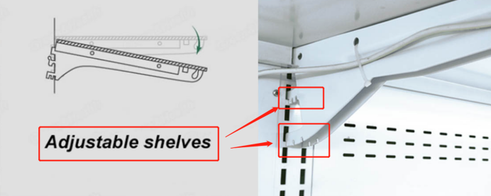 2. The angle of the shelves of the display chiller can be adjusted by 10~15 degrees, which can be more three-dimensional.